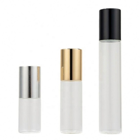 3Ml 5Ml 10Ml Rol Op Glas Helder Groen Blauw Amber Etherische Olie Metalen Fles Met Roller