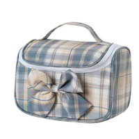 Nieuwe Trendy Handheld Make-Up Case Grote Capaciteit Rits Sluiting Bowtie Geruite Doek Draagbare Make-Up Tas Mode