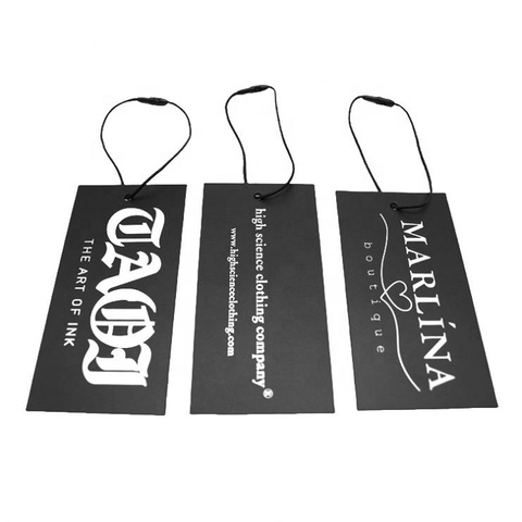 Customize Printed Black Garment Rope Hang Embossed Paper Hanging Label Tag for Clothing